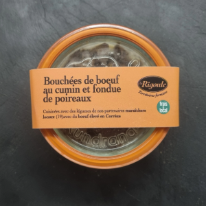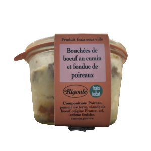 Plat cuisiné par L’Atelier Fermier de Naves. La viande de bœuf est découpée puis hachée pour être délicatement parfumée au cumin. La fondue de poireaux complétée de pommes de terre accompagne ces bouchées.